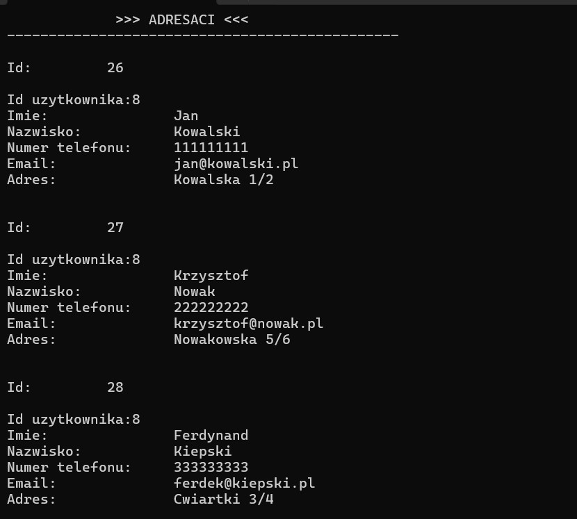 Repozytorium GitHub: https://github.com/DamianMolter/AddressBookOOP